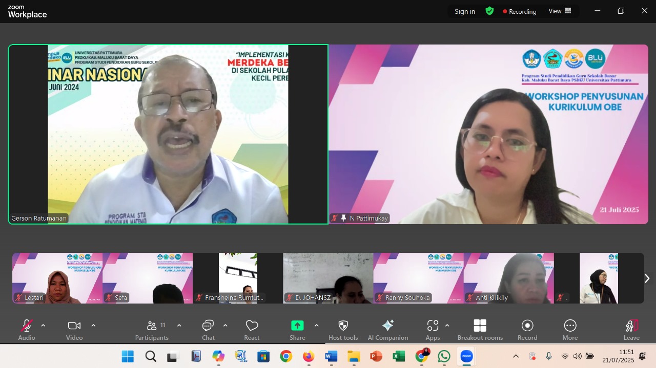 Tiakur, 21 Juli 2025 — Program Studi Pendidikan Guru Sekolah Dasar (PGSD) PSDKU Kabupaten Maluku Barat Daya sukses menggelar Workshop Kurikulum Outcome-Based Education (OBE) secara daring pada Senin (21/7). Kegiatan ini diikuti secara penuh oleh seluruh dosen PGSD PSDKU dan menghadirkan narasumber nasional, Prof. Dr. T. G. Ratumanan, M.Pd., seorang pakar pendidikan dari Universitas Pattimura.